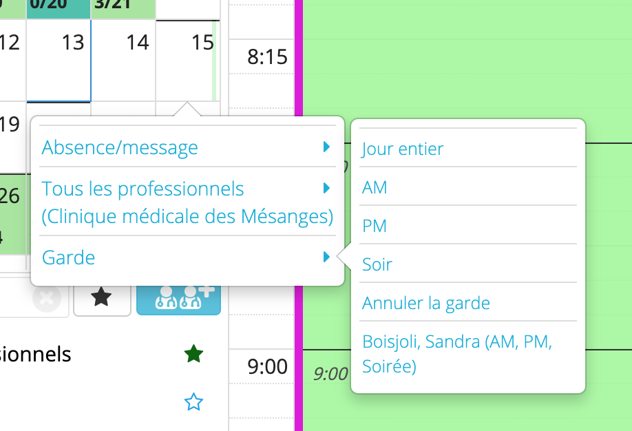 Ajout de l’affichage des professionnels de garde avec le clic droit