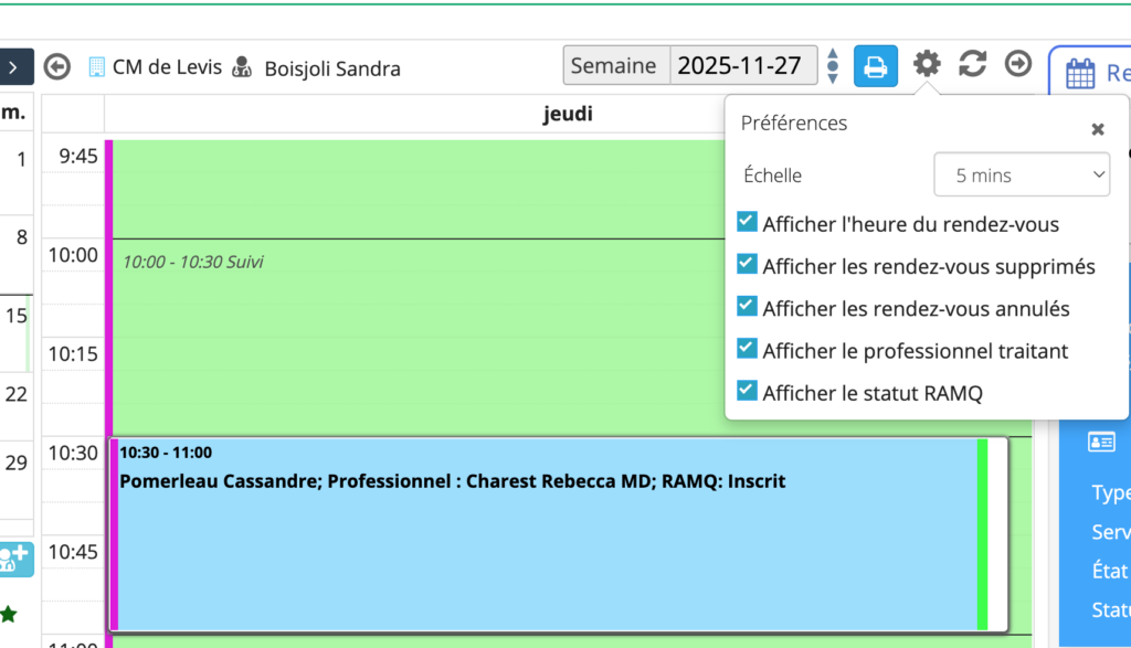 - Ajout des deux nouvelles préférences suivantes pour l’affichage sur le rendez-vous :